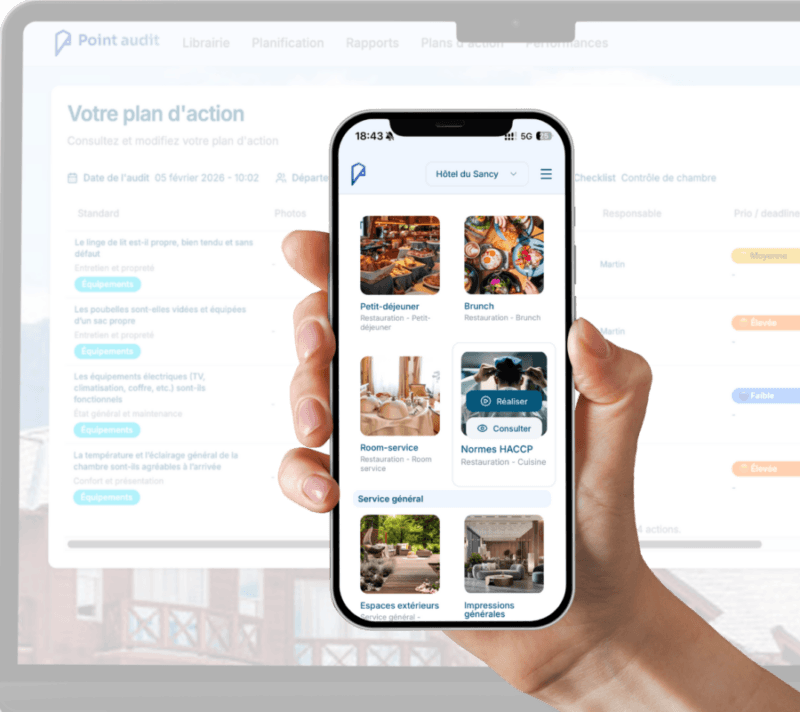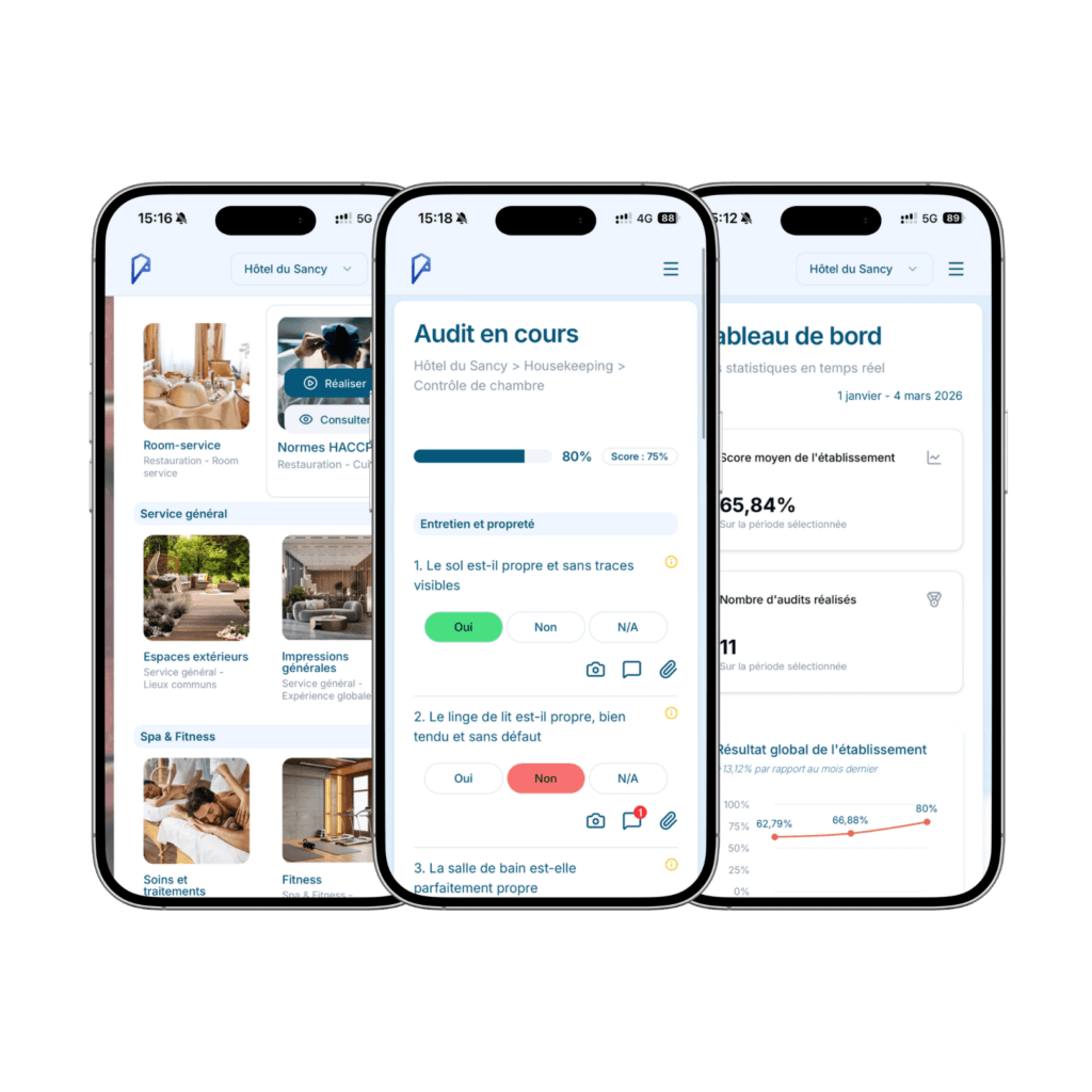 Accessible sur mobile, enrichi de photos et de plans d’action clairs, l’audit devient un outil pédagogique. Tous les services — y compris les saisonniers et prestataires — peuvent être impliqués dans une démarche qualité partagée.